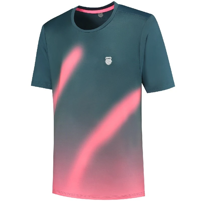Découvrez le tee-shirt K-Swiss Hypercourt Print Crew 5 vert et rose offrant une grande liberté de mouvement et un confort optimal.